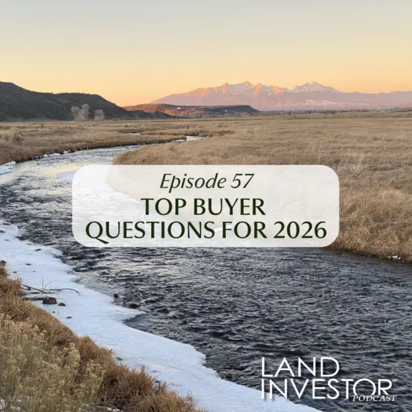 In this episode of the Land Investor podcast, Matt and Ryan break down the top questions buyers are asking as they evaluate ranches and recreational land in 2026, from water rights and access to insurance, pricing, and exit strategy considerations. Drawing on real-world transactions, they explain how informed buyers can reduce risk, validate value, and avoid late-stage surprises by asking the right questions early in the process.